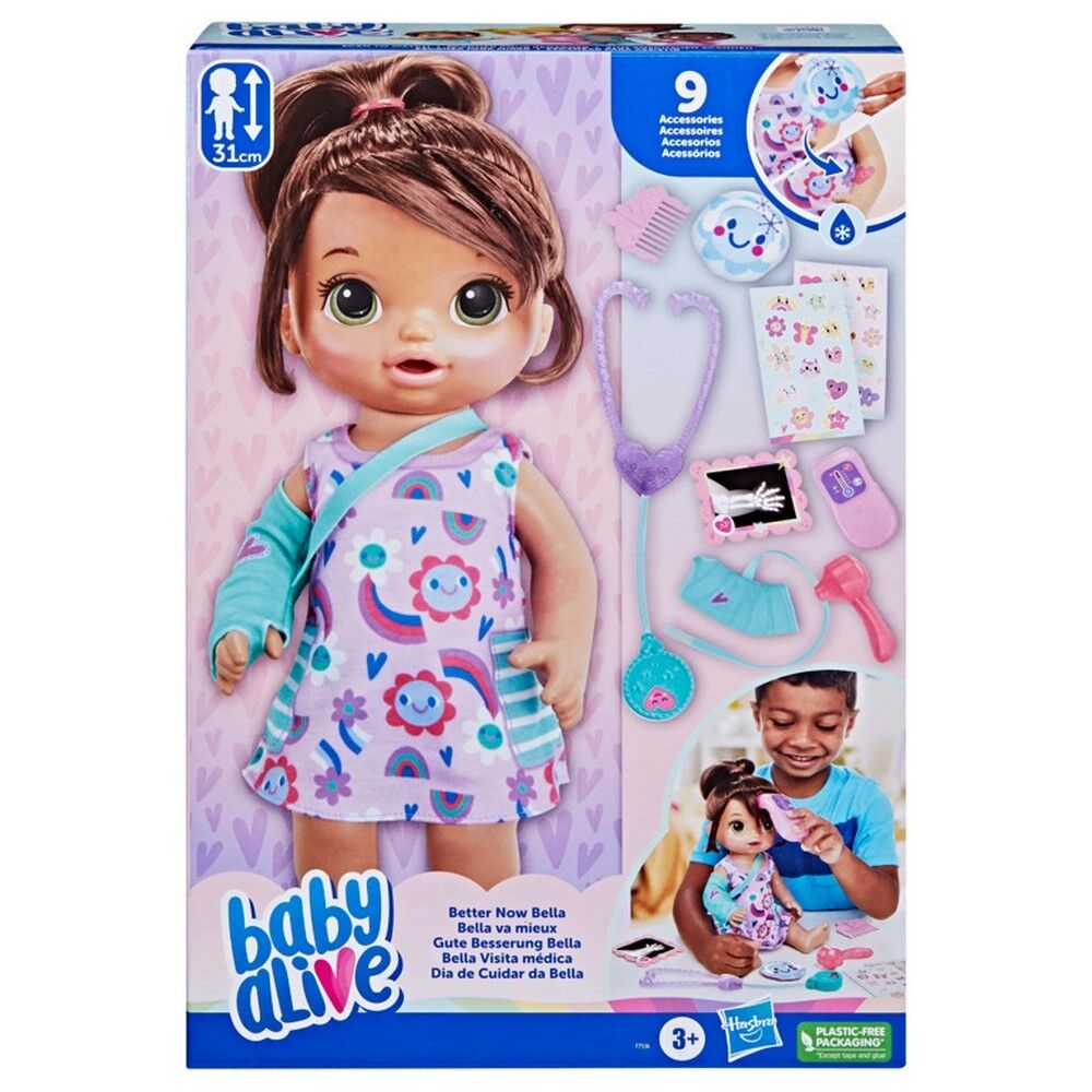 Bring playtime to life with Baby Alive Better Now Bella, the adorable doll who loves care and attention! Bella isn’t just any doll — she’s your child’s little patient, ready for a comforting check-up and lots of love.