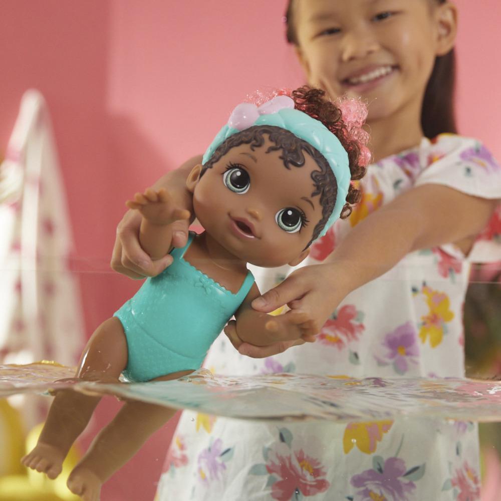 • Glam Spa Baby doll offers so many ways to play! After spa time, kids can help this 31.5cm (12.4-inch) waterplay doll take a pretend swim and dry off with a cosy flamingo towel wrap