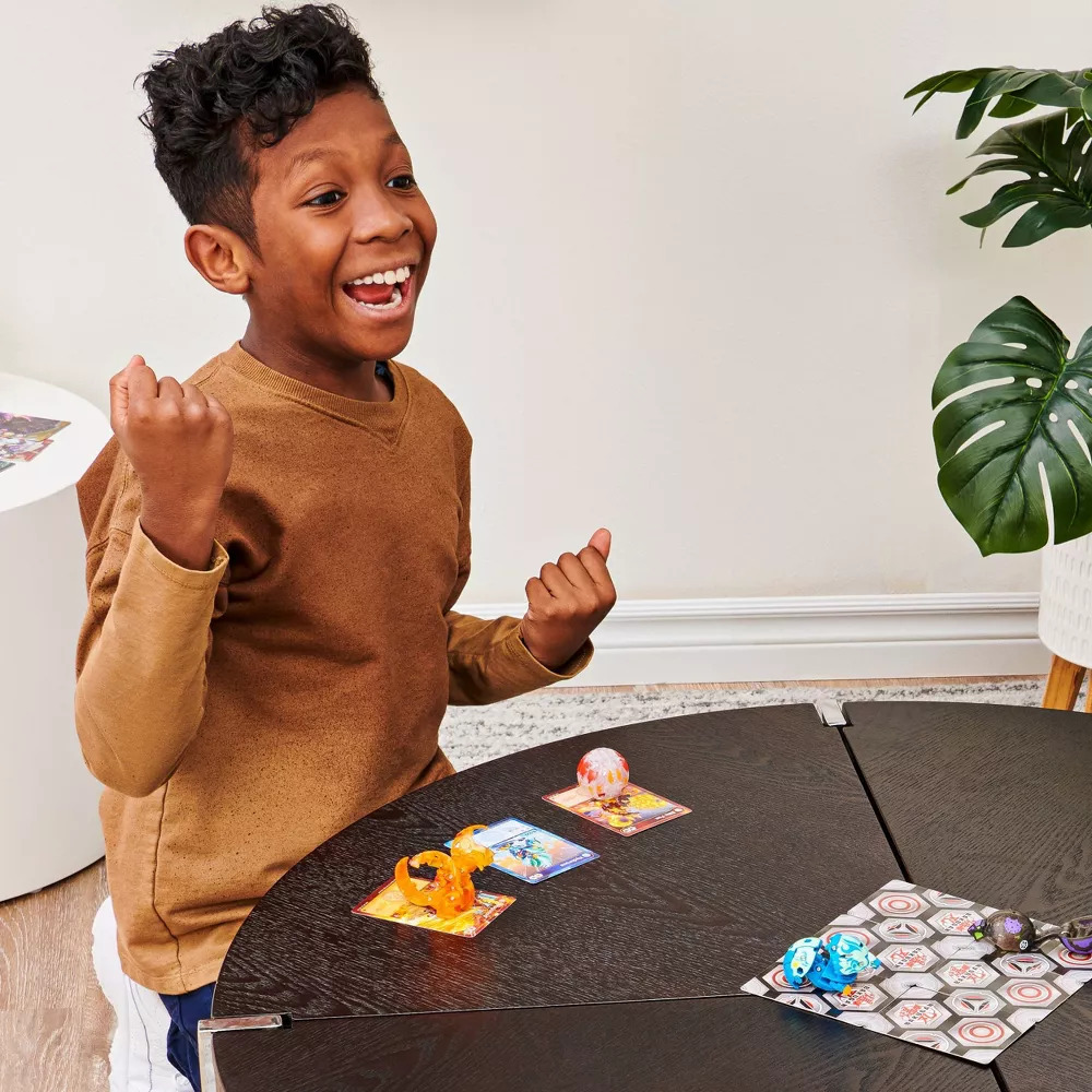 The Bakugan Starter Pack has everything you need to roll into action! Add two epic Bakugan from Bakugan Evolutions, one mighty Bakugan Ultra, six powerful BakuCores, and collectible character cards (all included) to your collection. Roll your Bakugan over the included BakuCores to pop open Baku-Action or choose your Bakugan Ultra to unleash an epic leap open transformation! Plus, use the included Gate-Card for even more ways to play and earn bonuses! With new and returning characters, these Ultra Bakugan all feature awesome detailing and Faction symbols! These mysterious Bakugan feature new shapes and unique transformations for even more battling power! Collect all your favorite Bakugan characters as seen in the Bakugan hit show (on NETFLIX). There’s over 200 Bakugan to collect! Build your collection, trade with friends and battle! Who will emerge victorious and become the ultimate Bakugan Brawler? Roll into action with the Bakugan Evolutions Starter 3-Pack!