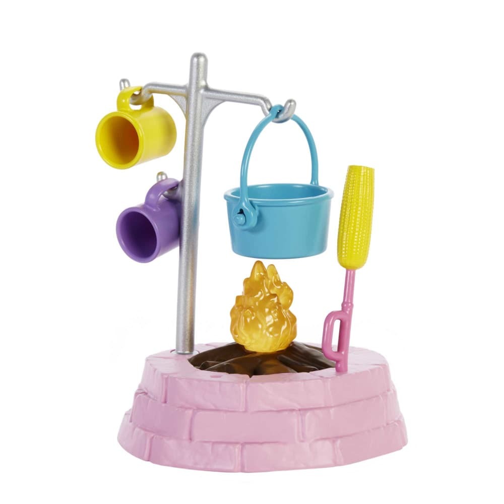 • Skipper doll comes with a pet bunny and accessories for a campfire cookout, including a firepit with built-in hooks, a pot, mugs and corn on the cob the pals can roast