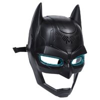 Sound just like Batman with the Bat-Tech Voice-Changing Mask! This interactive role-play mask fits right over your head and features blue light-up eyes and over 15 sounds! With a built-in voice changer, speak normally and the mask will magically change your voice to sound like Batman! Get ready for battle by pressing the button on the side of the mask to hear different sounds and activate the lights. With authentic details and adjustable straps for a custom fit, slide on this high-tech cowl and become the Caped Crusader instantly! Have hours of fun playing out your own Batman missions and battles with the Bat-Tech Voice-Changing Mask. For even more Super Hero fun, add the Batman Bat-Tech Gauntlet to your Batman Role-Play collection (sold separately). Speak like Batman with the Bat-Tech Voice-Changing Mask!