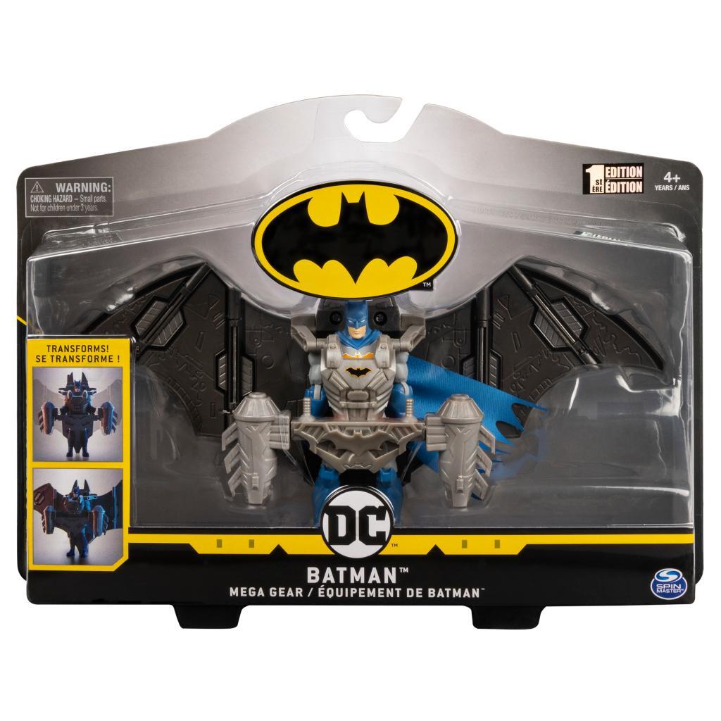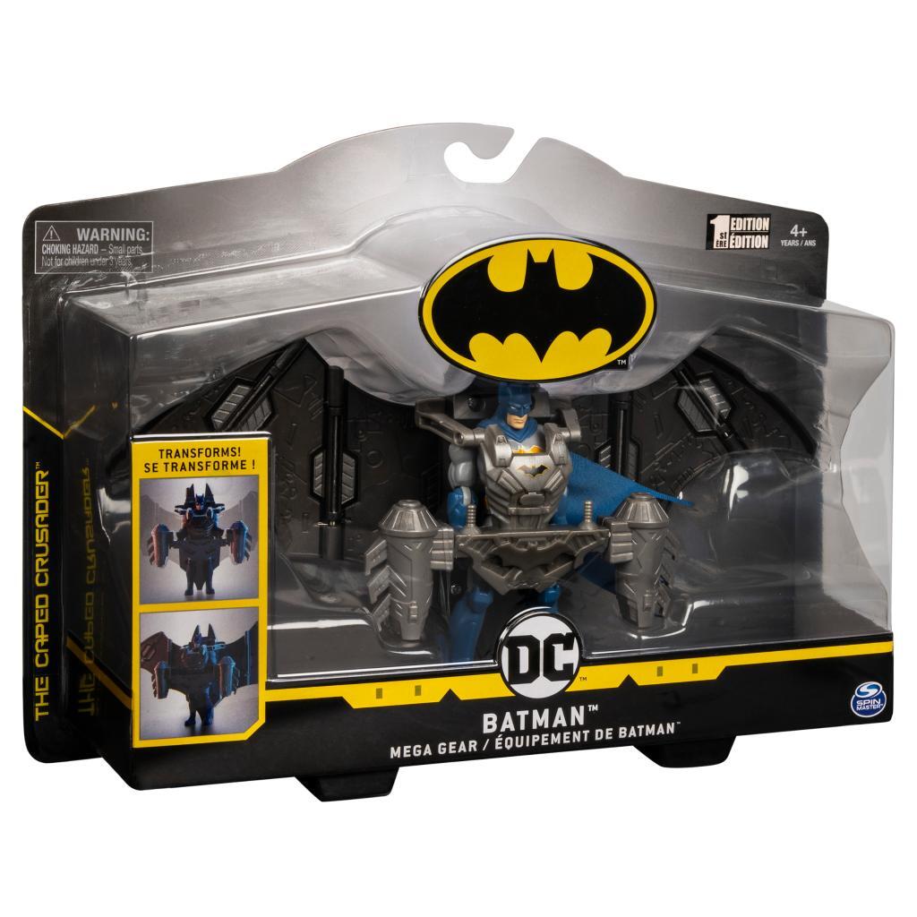 • TRANSFORMING ARMOR: Armed with his Mega Gear, BATMAN is ready for the ultimate battle! To activate, press the back to power up and make his wings pop open! Easily fold them up to transform again.