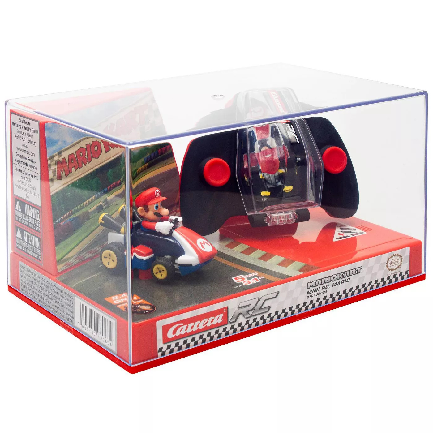 Grab the control and get ready to race with your favourite Mario Kart character in the 1:50 scale mini RC car. Mario races at speeds up to 5 km/h and comes with a remote controller that features a clear storage section to safely hold your RC car when not in use. The mini RC toy car also comes in a clear plastic jewel box making this a perfect item for a Mario toy collector to display for all to see! Race with Mario nonstop for up to 7-minutes on a single 20-minute battery charge with the included 3.7V rechargeable LiPo-Akku battery. The use of 2.4GHz technology allows up to 16 RC cars to be driven simultaneously giving you plenty of competition. Mario comes ready to run with all vehicle and controller batteries included!