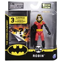 Epic missions begin with the BATMAN 10cm Action Figures! Join BATMAN’S SIDEKICK, ROBIN on an exciting mission! Will you find a Carnival Chaos, Harbor Defender, Sky Detective or Arkham Asylum Escape mission? Open the box to discover your mission on a collector card and three mystery accessories hidden in compartments! Find gauntlets, shields, blasters and more, plus one Batgear accessory in every pack to help build the Ultimate Armor BATMAN! Reveal accessories (including rare and super rare) that match your mission’s theme in material finishes like translucent, neon, shiny titanium and metallic. Armed with his mission-specific accessories, help ROBIN defend against the villains of GOTHAM CITY!