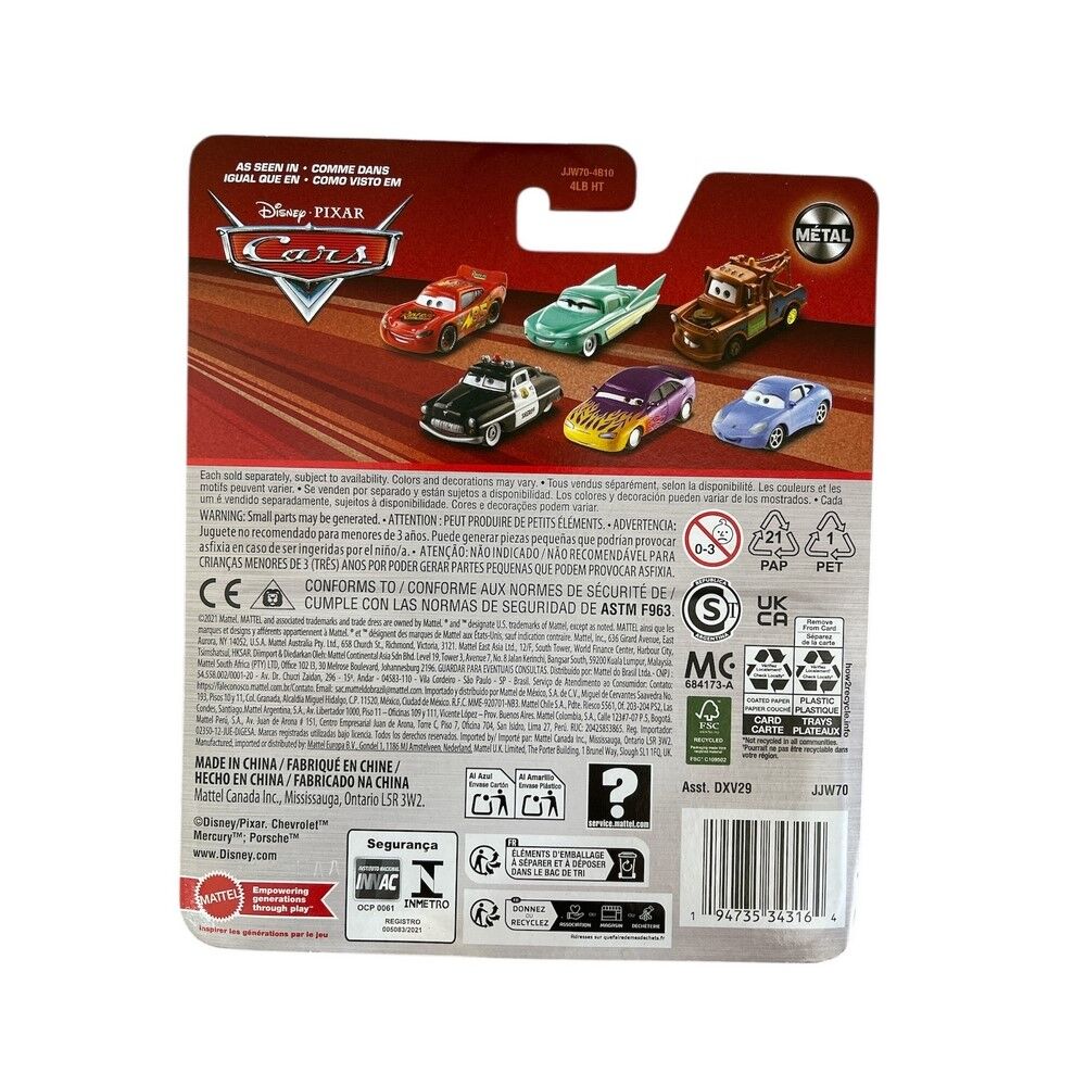 Made by Mattel, this die-cast metal vehicle includes authentic detailing, durable construction, and smooth-rolling wheels—perfect for imaginative play or display in any Cars collection.
