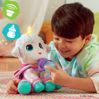 Reach for the furReal Sweet Jammiecorn Lamb light-up toy day and night. She's soft, snuggly, and kids ages 4 and up can show this plush pet just how much they care. In day mode, feed her with the included bottle, and she’ll make cute eating noises and playful sounds. What makes this interactive toy even more adorable? Kids can cuddle up with her at bedtime, too. When it's time for lights out, press her horn to close her eyes. The horn will also change colour from a happy yellow for day to a soothing blue for night. If kids want to hear lullabies or calming white noise soundscapes, just press the pet’s ear in night mode. This day-to-night friend makes a wonderful gift and a cherished friend.