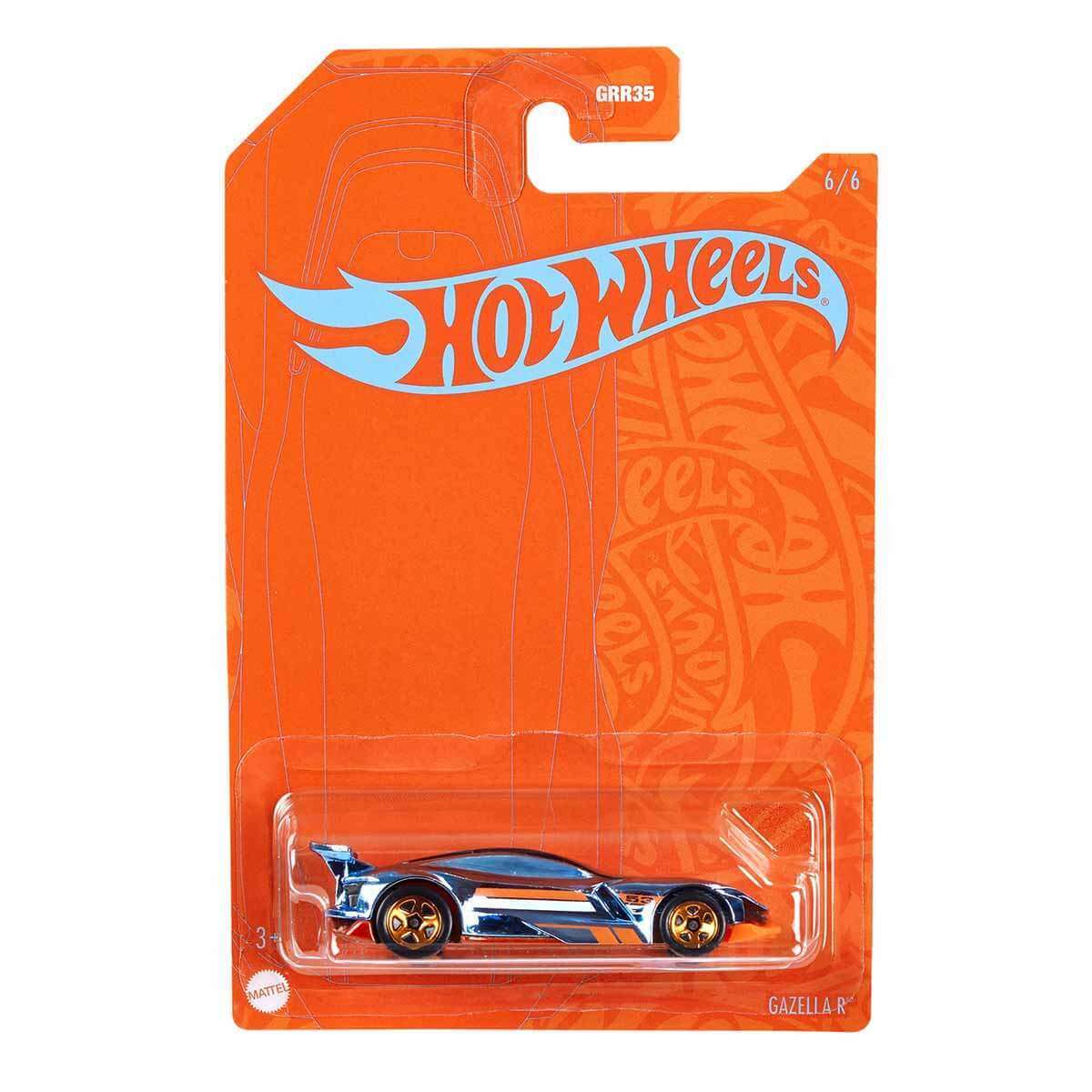 Celebrate Hot Wheels 53rd anniversary with the Orange and Blue range. This set includes 6 die-cast cars. Each authentic die-cast vehicle is painted orange with blue and white accents. Perfect for kids, collectors and car enthusiasts!