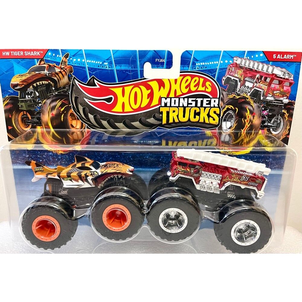 • Hot Wheels Monster Trucks 2 Pack Tiger Shark & 5 Alarm