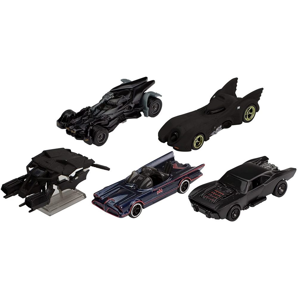 Includes 5 Hot Wheels Batmobile vehicles from the Batman franchise in special collector packaging.