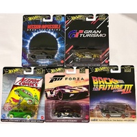 • Hot Wheels Premium POP Culture Set of 5 Lamborghini Huracan LP 620-2 Super Trofeo / 2021 BMW M5 / 2016 Ford GT Race Course / Action Comics#1 / Back to