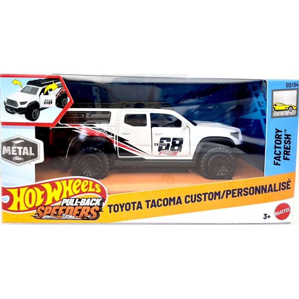 Hit the road (or off-road) in style with the Hot Wheels Pullbacks Speeders Toyota Tacoma Custom! This rugged pickup combines the toughness of the real Tacoma with Hot Wheels flair. Pull it back, release, and watch it blast forward into high-speed adventures.