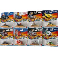 This exciting set of 8 die-cast vehicles features characters from Star Wars, Marvel, Disney, and Pixar, each reimagined in high-speed Hot Wheels style. Perfect for fans, kids, and collectors alike.