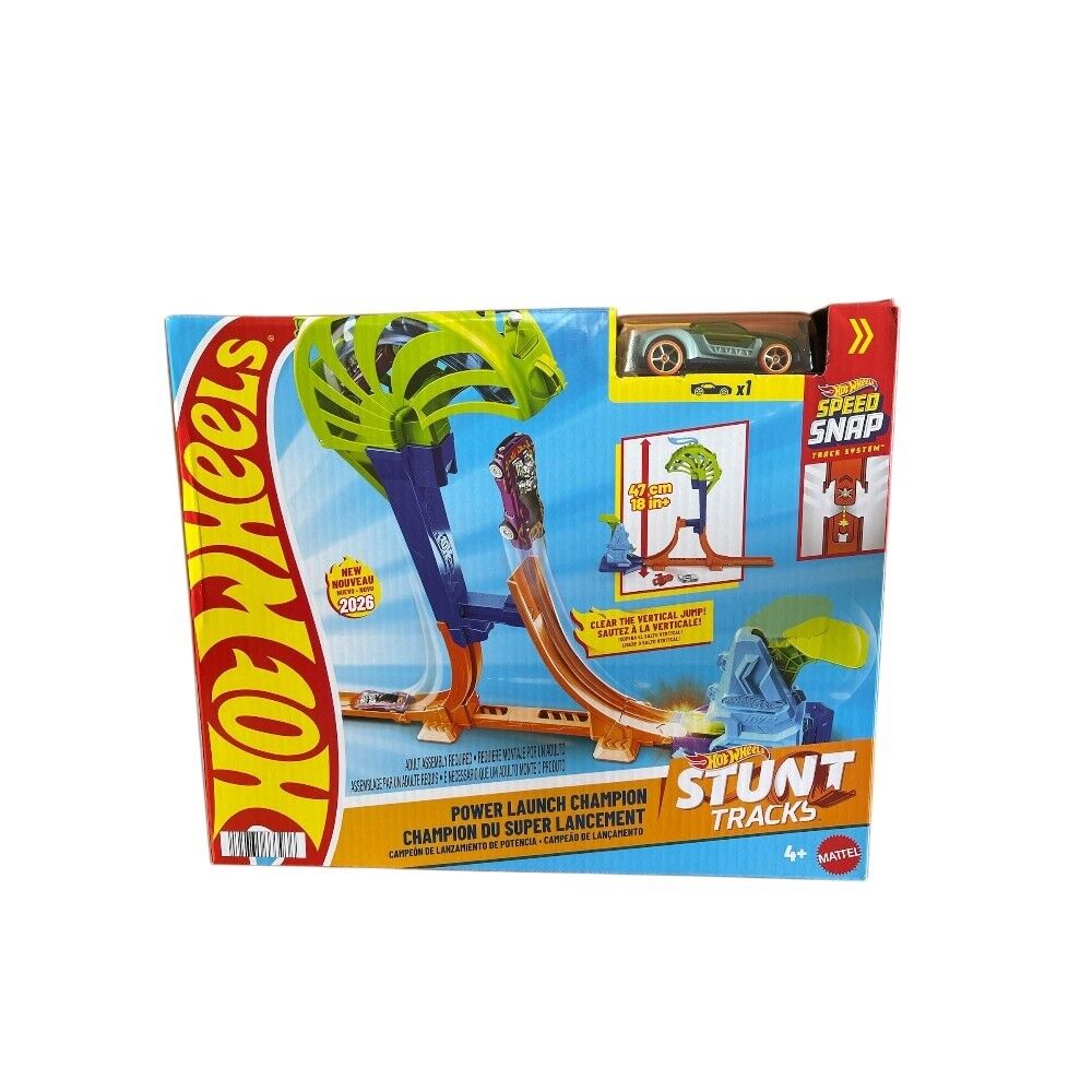 Take racing to the next level with the Hot Wheels Stunt Tracks Power Launch Champion (2026 New Release). Designed for high-impact stunt action, this set challenges kids to launch their car vertically and clear the jump for an exciting, skill-based play experience.