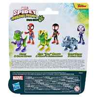 Join Team Spidey on their latest dino adventures with this Marvel Spidey and His Amazing Friends Miles "Spin" Morales and Marvel's Electrosaurus toy set! This action figure set includes a poseable 4-inch Miles "Spin" Morales toy figure with updated Dino-Webs suit deco, and a poseable Marvel's Electrosaurus dino baddie to encourage big, imaginative adventure play for preschoolers ages 3 and up.