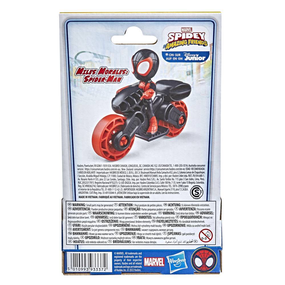 • This Spidey and His Amazing Friends toy comes with a Miles Morales: Spider-Man figure and super cool motorcycle toy that the figure can ride for fun imaginative play