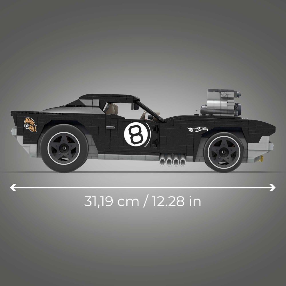 Like a racing trophy, this collector's edition of Rodger Dodger was made for your display case. This large-scale racer is authentically designed with deluxe features like a trunk which opens to reveal a nitrous oxide system, removable hood and engine and a sleek paint job inspired by the Magic 8-Ball. The set even includes the classic diecast model with a buildable display stand. This iconic muscle car may have been designed for high performance, but now it's built to show off.
