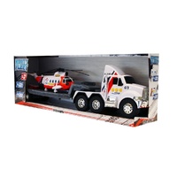 • 2-in-1 rescue playset: Includes a flatbed truck and helicopter