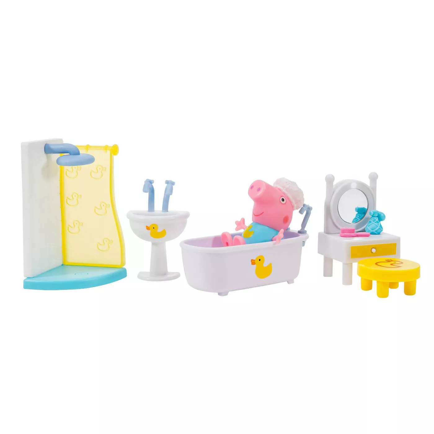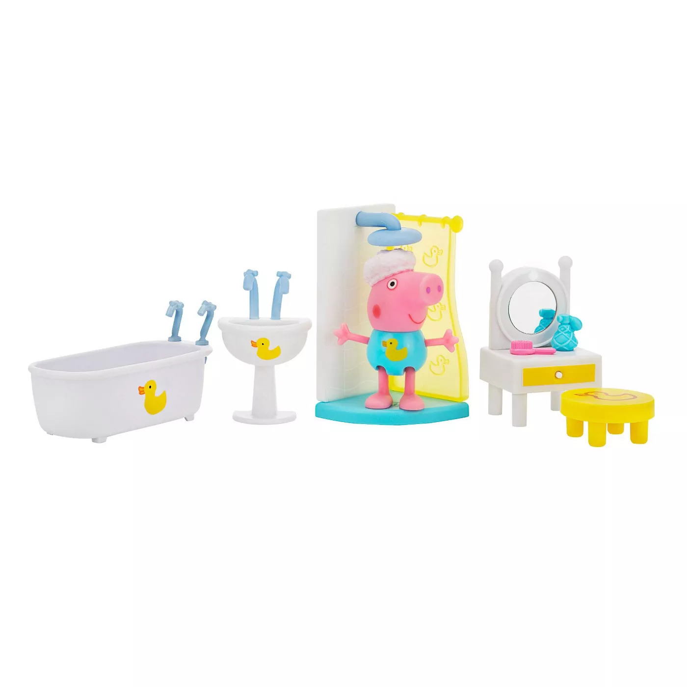 • Includes Bath time Peppa, Bathtub, Shower, Vanity, Stool, and Sink