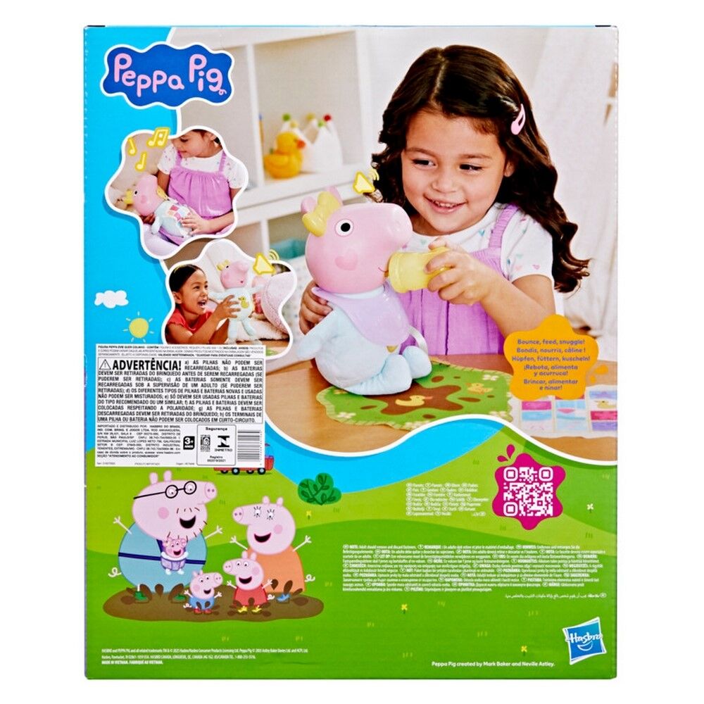 • Makes real Peppa Pig-style sounds — giggles, oinks, and baby noises