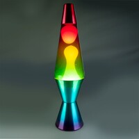 • Features a rainbow gradient glass body filled with lava that swirls and ripples when lit