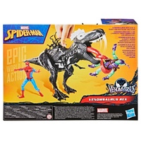 Unleash monstrous mayhem with the Marvel Spider-Man Venomsaurus Rex! Inspired by the epic Venomverse storyline, this fearsome creature combines the raw power of a dinosaur with the terrifying symbiote of Venom.
