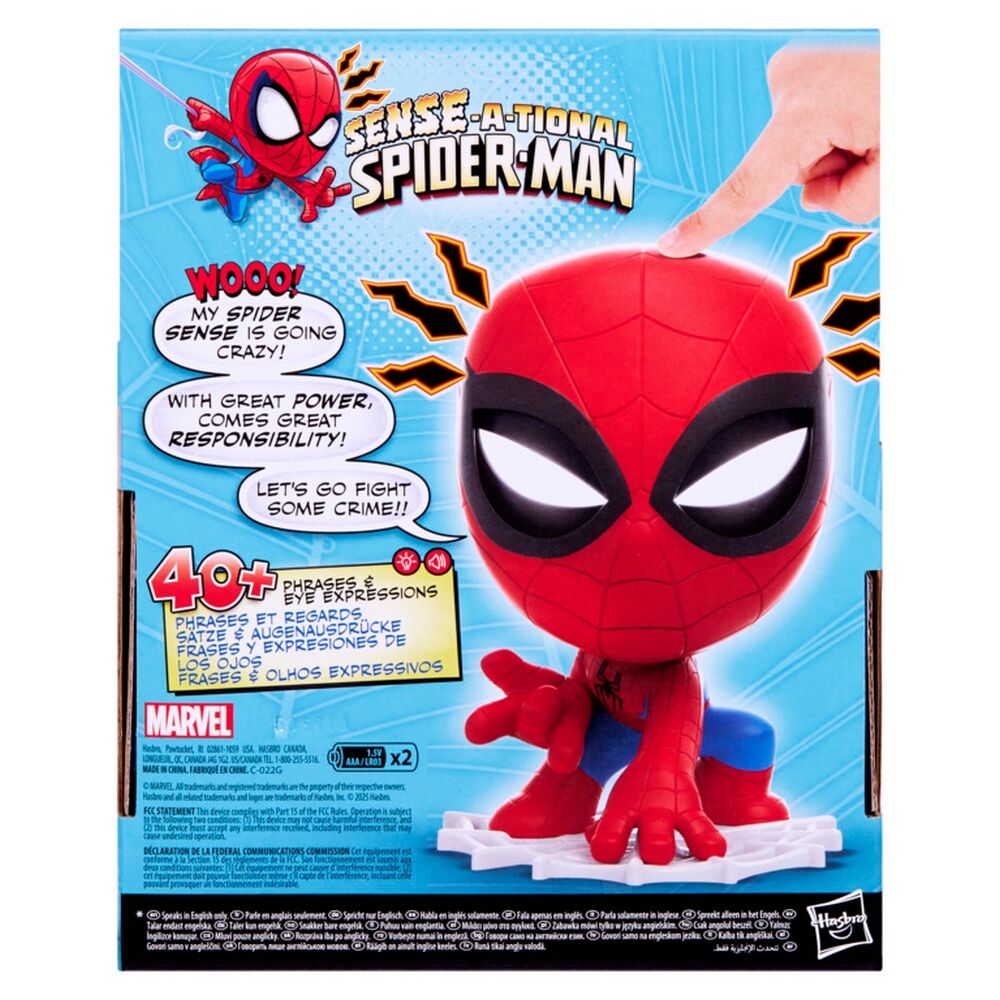 • Interactive Play: Push Spider-Man’s head to activate lights and sound effects