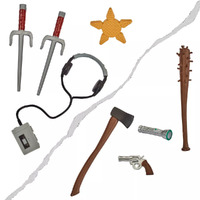 • Hopper wears jeans and his iconic Hawaiian shirt—based on Season 3—and comes with his handgun, baseball ball with nails, axe, and flashlight.