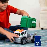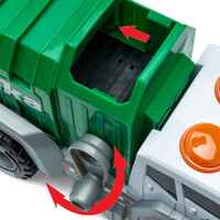 Get ready to roll with the white and green Tonka Crank and Haul Garbage Truck. With its realistic lights and sounds, crank-operated rotating hopper, and vibrant color scheme, this truck is here to make trash collection the coolest job in town! Part of the Crank and Haul collection, this truck features an interchangeable cab that you can mix and match with other Crank and Haul models taking customization to a whole new level. Collect all three and create your own fleet of construction vehicles for endless play possibilities. Realistic Lights and Sounds The Tonka Crank and Haul Garbage Truck comes to life with realistic lights and sounds, from the rumbling engine to the rhythmic beeping. Experience the thrills of a real garbage collection operation right in your own playroom! Crank and Rotate Hopper It's time to take out the trash, Tonka style! With the crank-operated rotating hopper of the Tonka Crank and Haul Garbage Truck, you're in full control of the action. Crank the lever to load and unload the trash, just like a real garbage collector! Removable Clip-On Recycle Bin Let's recycle and reduce waste together! The Tonka Crank and Haul Garbage Truck comes with a removable clip-on job recycle bin that helps you separate recyclables in style. Clean, green, and environmentally friendly, that's the Tonka way!