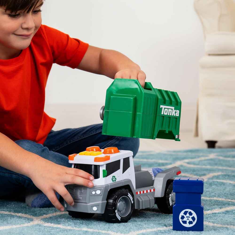 - Tonka Tough: Trust the Tonka name for high-quality toys that last. Take your garbage collection adventures to the next level with the Crank and Haul Garbage Truck. Its authentic styling and durable design make it tough enough to handle any cleanup challenge, while its action-packed features will keep you entertained for hours!