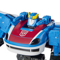 The cunning Autobot diversionary tactician, Smokescreen, converts into classic racecar mode in 16 steps. Comes with 3 weapon accessories that attach to figure in both modes.