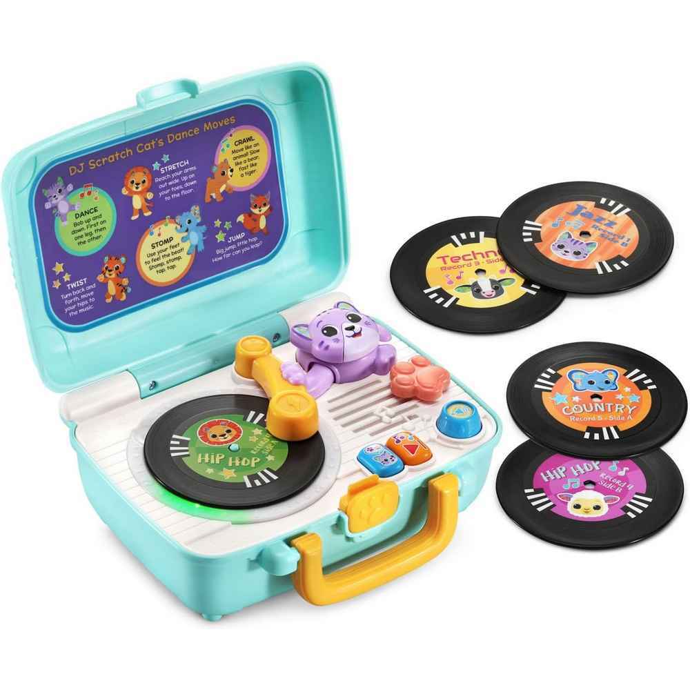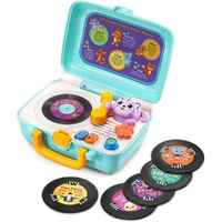 Drop a record on the turntable and have some fun! Little ones will love the My 1st Record Player by VTech! 5 double-sided records play as the turntable lights up to encourage interaction, choose from 5 music styles; Jazz, Pop, Techno, Country or Hip Hop and listen to animal friends sing cool songs. Interact with the music using the re-mix and skip buttons to add animal sounds to the music or to hear fun phrases or simply skip to the next track. Record player is easily portable and the records store in the back. Encourages auditory awareness and imaginative play.