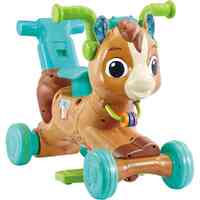 Go on a riding adventure as you push, scoot or bounce along with Pony, who’s packed with activities! Featuring 19 songs teaching colours, numbers and shapes- Pony makes learning extra fun! Enjoy role-play and imaginative play through the 5 location buttons and set off on a wild adventure. Spin the roller and press the buttons to develop fine motor skills and hear Pony’s whinny and gallop along to hear trotting sounds. Providing hours of playful fun and supporting language development, motor skills and imaginative play; this is the perfect little animal friend!
