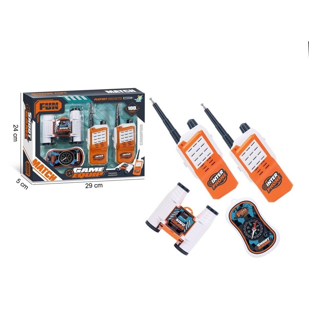 • Includes 2 walkie talkies, binoculars, and a toy compass