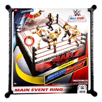 • Authentic WWE Superstar Ring Playset with interchangeable Main Event and RAW ring labels (2 of each)