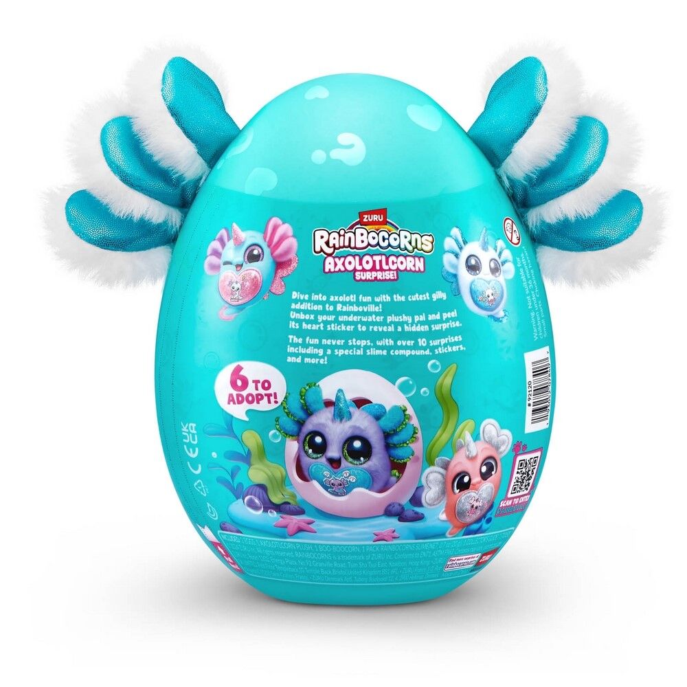 Dive into a world of cuddly surprises with the ZURU Rainbocorns Axolotlcorn Series 1! Each adorable plush comes hidden inside a colourful mystery egg, waiting to be hatched. Will you find the sparkly pink, blue, purple, or one of the rare glitter Axolotlcorns? Collect them all and discover the magical surprises inside!